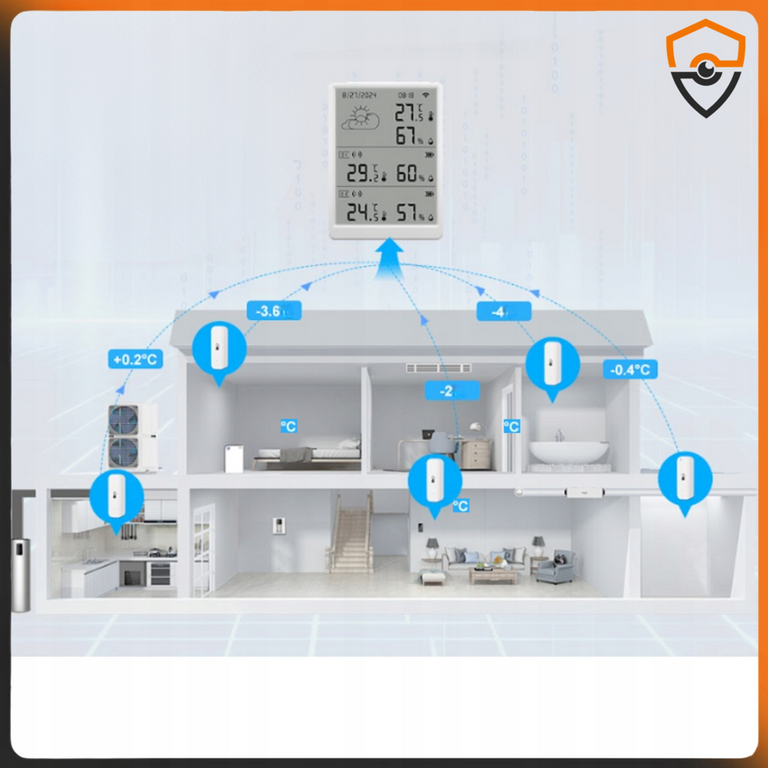 Do stacji pogodowej możesz dodać aż do 10 czujników temperatury i wilgotności.